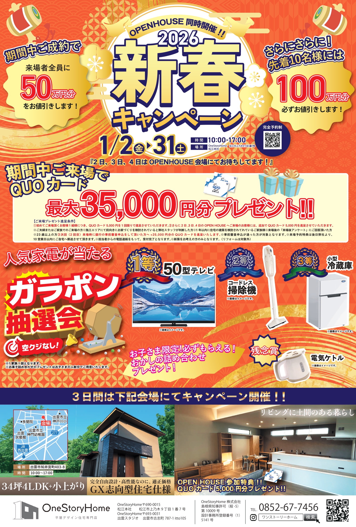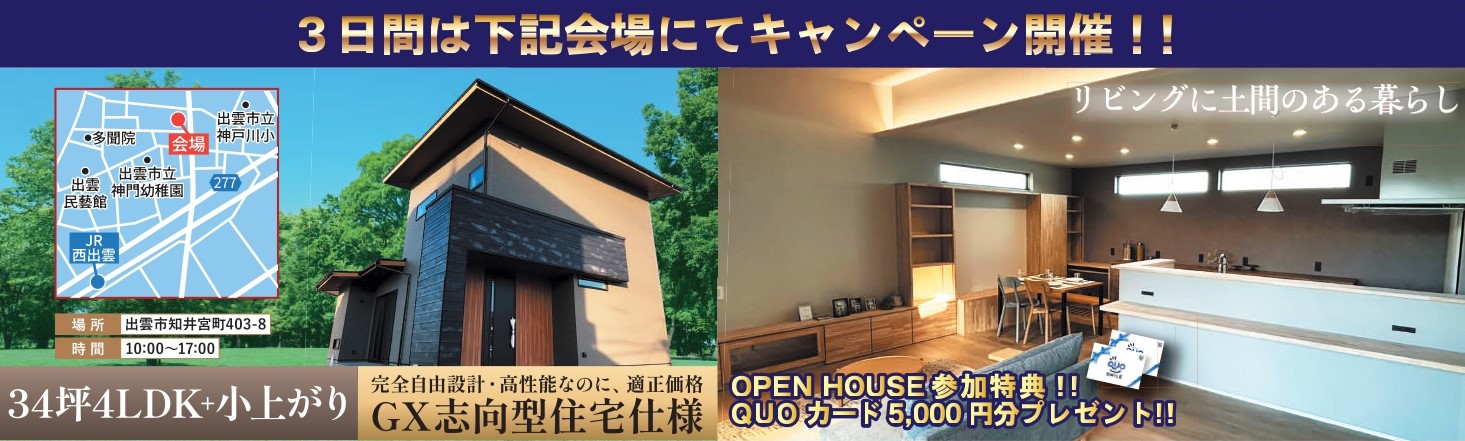 ②2日・3日・4日のOPENHOUSEへご来場のお客様には、追加でQUOカード5,000円を進呈させていただきます。